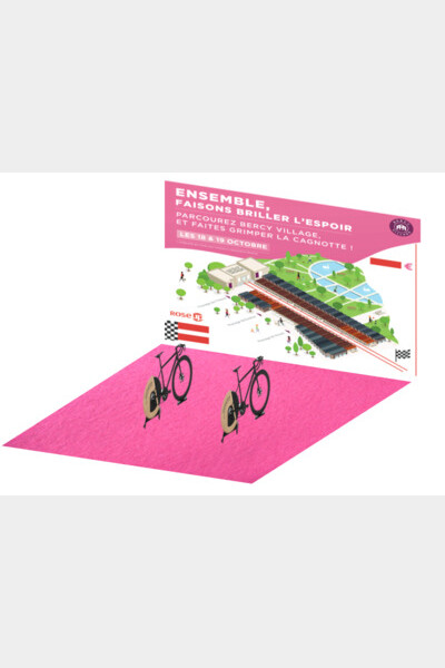 Deux vélos prendront place au cœur de la Cour Saint-Émilion. Le principe est simple : les participants devront enfourcher la selle, pédaler quelques minutes au cœur de Bercy Village pour transformer leur énergie en don !