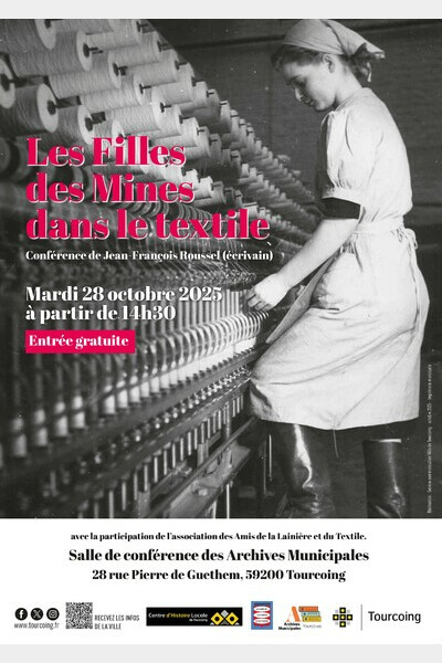 La Ville de Tourcoing vous invite à une rencontre exceptionnelle le mardi 28 octobre 2025 à 14h30, en présence de l’auteur et de Georges Dubois, président des Amis de la Lainière et du Textile, et d’une ancienne "fille des mines".