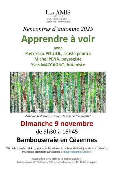 Inscription obligatoire par courriel à c.linage@bambouseraie.fr