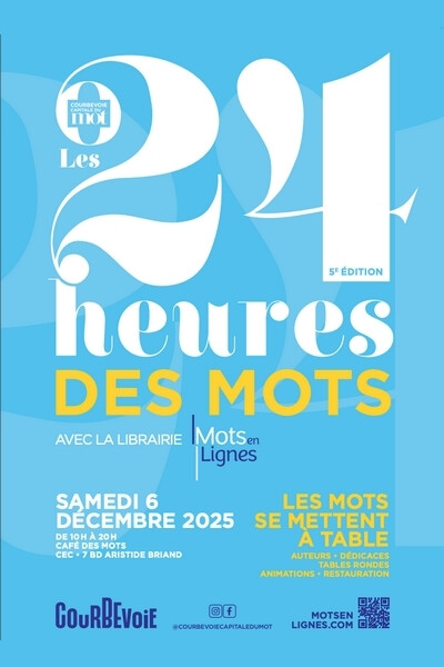 Créé en 2021, l’évènement littéraire “Les 24H des Mots” fait parti du dispositif “Courbevoie, Capitale du Mot” déployé par la Ville de Courbevoie.