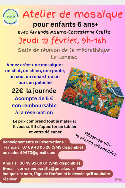 Au programme : la création d'une mosaïque représentant un chat, un chien, une poule, un coq, un renard ou même un ours en peluche.