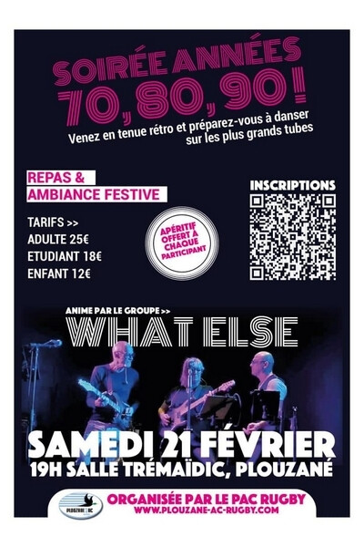 Soirée Dansante animée par le Groupe WHAT ELSE de Brest, chansons et musiques des années 70 à 90 avec repas.