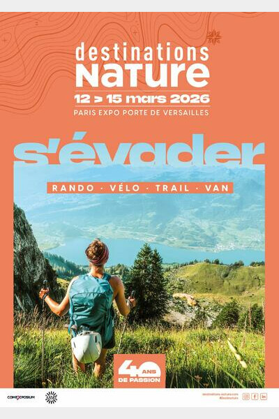 Du 12 au 15 mars 2026, Destinations Nature prend place à Paris Expo Porte de Versailles pour présenter les dernières nouveautés en matière d’équipement, de voyages nature, d’hébergements, d’activités en France et à l’international, sans oublier, le Festival Expérience Nature qui propose une sélection de films d'aventure et vanlife.