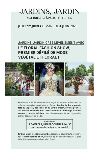 L'événement Jardins, jardin est de retour du 1er au 4 juin 2023 au coeur du jardin des Tuileries !