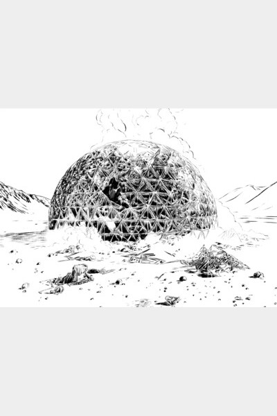 Cette exposition présente une exploration du motif de la sphère et du dôme, entre architecture, science et imaginaire. À travers dessins, installations et images hybrides, l’artiste tisse un récit où se mêlent science-fiction, recherche savante et paysages terrestres ou célestes.