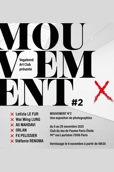 Vagabond Art Club dévoile du 7 au 29 novembre, l'exposition photographique Mouvement n°2 dans les espaces du Club du Jeu de Paume Paris-Etoile, un lieu confidentiel et emblématique.