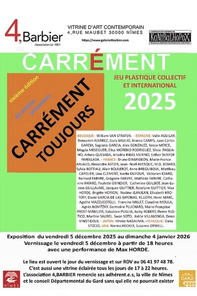 Tous les ans, 4,BARBIER organise sous différents intitulés une exposition de groupe offerte aux adhérents de l’association et du réseau européen “KANIBAL’HOPOX”.