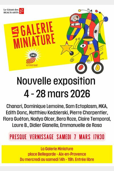 Plusieurs artistes de février prolongent leur présence : Claire Temporal (sculptures os et dentelle), Nadya Olcer (dessin-peinture), Bera Roze (peinture), Laure B. (peintures-collages), Flora Guéton (assemblages sur bouchons). Et toujours les travaux de Didier Gianella (collages) et Emmanuelle de Rosa (détournements), fondateurs de l'association Automatikart et La Galerie Miniature.