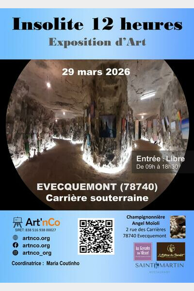 Insolite 12 heures revient pour sa 4ème édition à la carrière souterraine d’Evecquemont (78) et accueillera une trentaine d’artistes le dimanche 29 mars, de 9h à 18h30.
