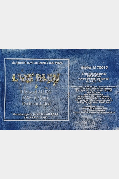 Du 9 avril 2026 au 7 mai 2026, la Galerie M accueille "L’Or Bleu", une exposition de cyanotypes signés Richard Mury.