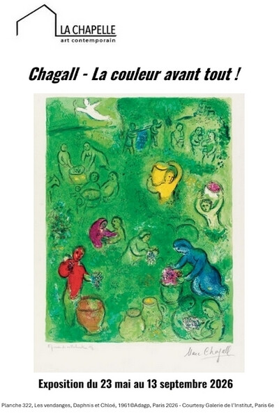 Cette exposition consacrée à l'oeuvre lithographique de Marc CHAGALL et à la révolution chromatique qu'il insuffle à cette technique au milieu du XXe siècle.