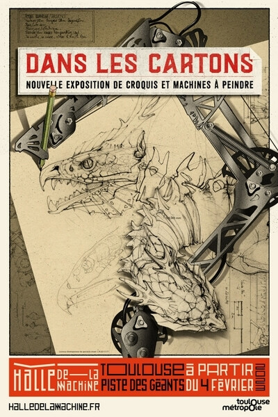 Plus d’une centaine de croquis de François Delaroziere se dévoilent à l’intérieur et à l’extérieur de la Halle de La Machine.