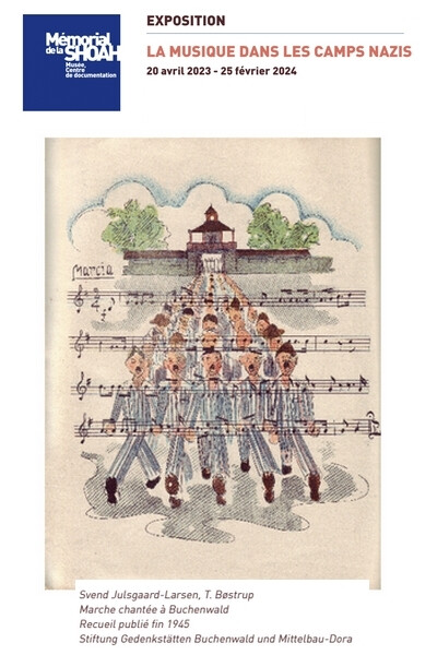 Grâce à un parcours topographique, l’exposition montre que dans les divers espaces des camps (porte, place d’appel, blocs, etc.), la musique résonnait. À chaque lieu correspondait un répertoire musical spécifique lié à des fonctions particulières.