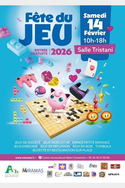 Le rendez-vous à ne pas manquer, la Fête du Jeu 2026, qui se déroulera à la nouvelle Salle des Fêtes Pierre Tristani à Miramas, le samedi 14 février de 10h à 18h !