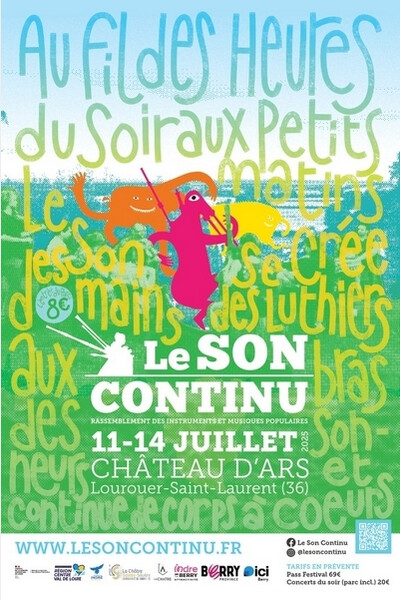Le Son Continu se veut avant tout un festival par et pour les danseurs et musiciens. Alors, n’hésitez pas à apporter vos instruments et à venir occuper les nombreux parquets en accès libre disséminés un peu partout dans le parc. Laissez libre cours à votre créativité et venez partager votre passion !