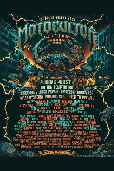 AIRBOURNE – ARCH ENEMY – CASTLE RAT – COLTAINE – CRYPTOPSY – DEAFHEAVEN – EYES – FIT FOR AN AUTOPSY – HEAVY // HITTER – HERETOIR – HOLY MOTHER – INTERNAL BLEEDING – JOHN CXNNOR – JOOLS – JUDAS PRIEST – KILLERS – KIM DRACULA – LES HOMMES CRABES – MODDER – MONKEYS ON MARS – PAIN MAGAZINE – RED SUN ATACAMA – SACRED REICH – SHAÂRGHOT – SIGNS OF THE SWARM – VADER – VOIVOD – WARNING – WORMSAND – WITCH CLUB SATAN
