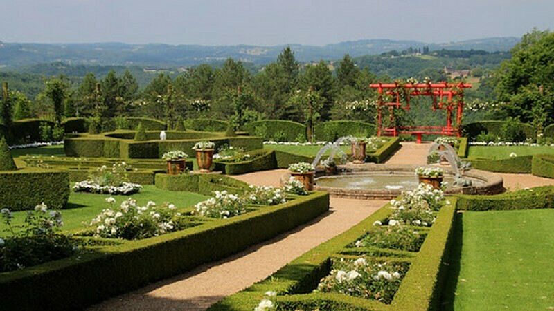 Autour du Manoir du XVIIe siècle s’étend le jardin français où les jeux de perspectives et la maîtrise de la Nature mettent en scène les arabesques de buis, les fontaines jaillissantes, les miroirs d’eau, les tapis de gazon et la collection de sculptures végétales taillées à la main par les jardiniers d’Eyrignac.