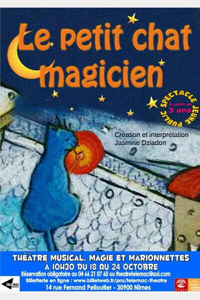 Les aventures drôles, tristes et magiques d’un petit chat de rue pour les 3-6 ans, interprétée par Jasmine DZIADON, où marionnettes, tours de magie, chansons et autres surprises jalonnent le parcours de ce chat aussi mignon que polisson…