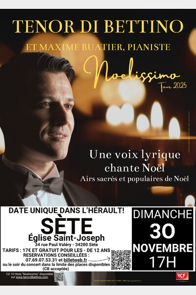 Le Ténor Di Bettino vous propose "Noelissimo" Tour 2025 dimanche 30 novembre 2025 à 17h, en l'Eglise Saint-Joseph de Sète (34).