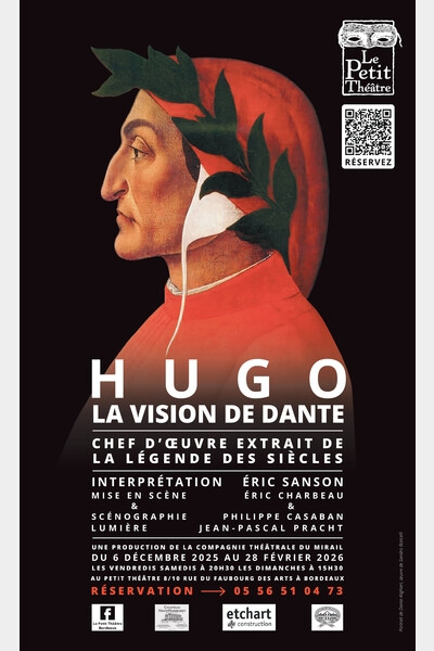 Découvrez "La vision de Dante" au Petit Théâtre de Bordeaux, une création théâtrale captivante interprétée par Éric Sanson, du 6 décembre 2025 au 28 février 2026, tous les vendredis et samedis à 20h30 et les dimanches à 15h30.