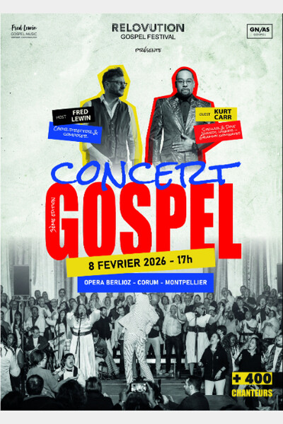 Moment fort de ce festival : Le CONCERT final avec Kurt Carr, mondialement reconnu, qui aura lieu le dimanche 8 février à 17h à l’Opéra Berlioz (Le Corum), où plus de 400 choristes seront réunis sur scène pour une concert spectaculaire qui vous fera vibrer.