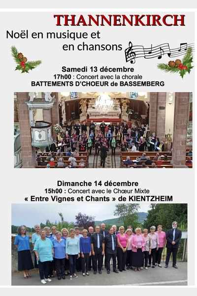 Les 30 choristes de Kientzheim présenteront des chants très divers, allant de la chanson française contemporaine à la renaissance, au gospel mais aussi des chants issus de la langue italienne, anglaise, espagnole, africaine, un feu d’artifice qui apportera beaucoup de bonheur aux spectateurs qui viendront les écouter à l’église paroissiale de Thannenkirch, le dimanche 14 décembre 2025 à 15 h.