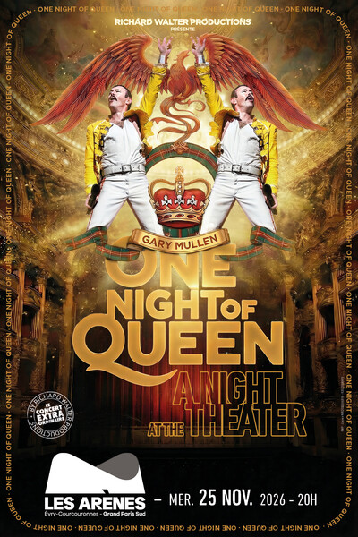 Produit en France par Le Concert Extraordinaire, ONE NIGHT OF QUEEN : A NIGHT AT THE THEATER célèbre l’un des plus grands répertoires de l’histoire du rock et fait revivre, le temps d’une soirée, l’esprit flamboyant de Freddie Mercury.